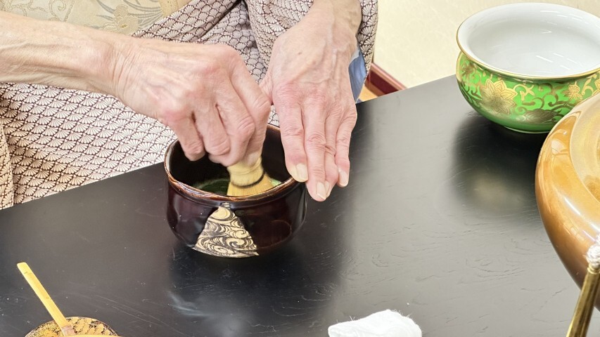 今日の【茶道】講座は、初釜茶会に向けた練習組とお濃茶を楽しむ組に分かれてのお点前でした。
